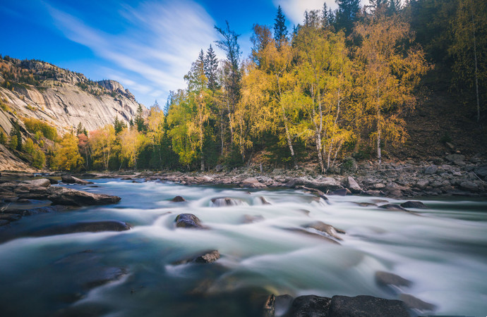 10月:喀纳斯的白桦林、南疆的胡杨。
